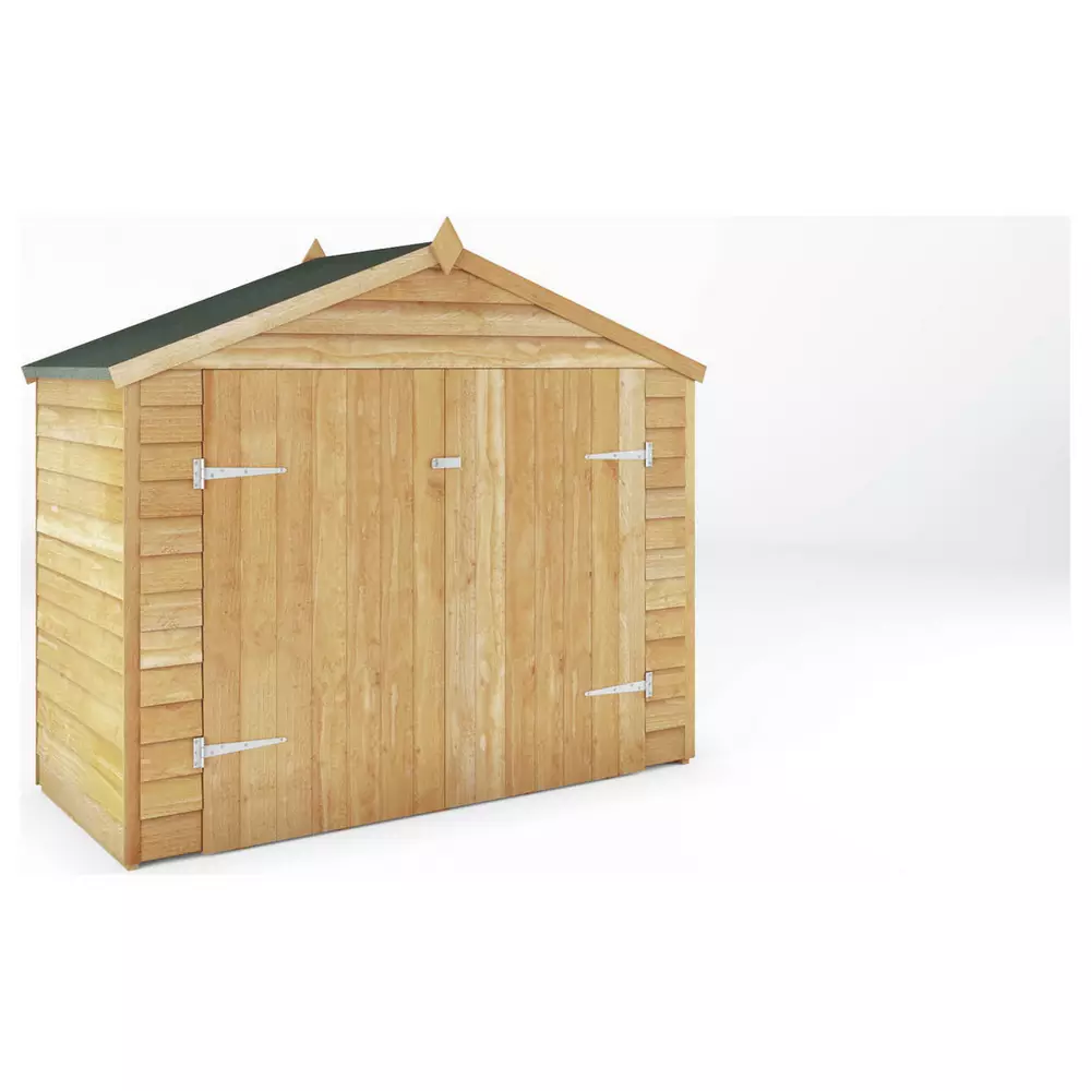 Create convenient garden storage with the Shire rustic effect overlap garden store shed, made from timber with a rustic exterior. The overlapping design helps rainwater run off, while solid OSB flooring and roof protect tools and equipment from the elements. Fitted with mineral felt roofing, this compact unit provides ample capacity for garden tools, equipment and household items without taking much space. The sturdy frame provides reliable support with a door for easy access.